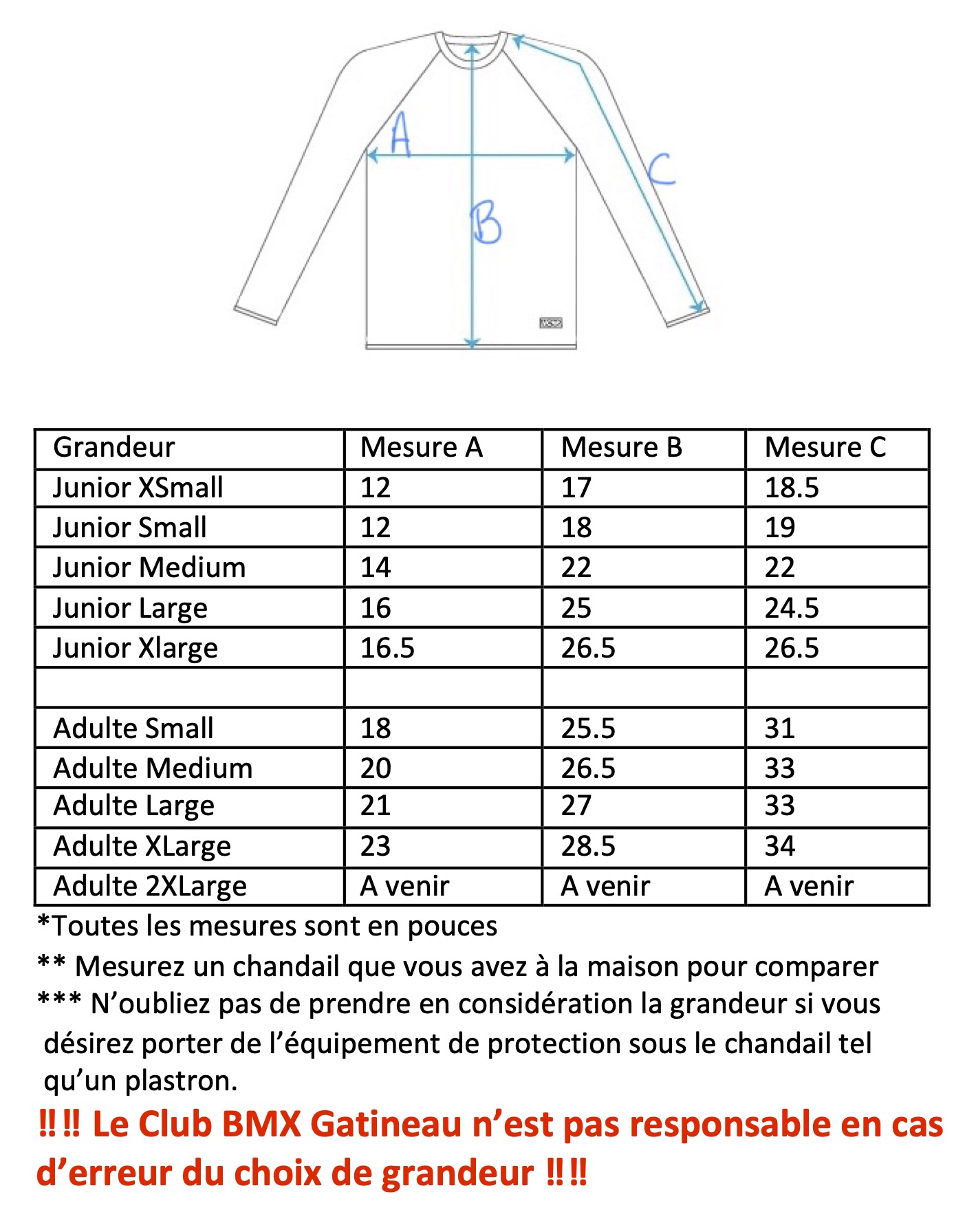 - Un chandail à manches longues. Le Club fournit un jersey à chaque pilote et le coût est inclus dans les frais d’inscription.
